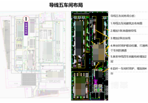 2025年6月,再次啟動(dòng)與中天光電合作耐熱導(dǎo)線廠河口老工廠的精益布局改善及目視化項(xiàng)目。河口老工廠土地面積6萬平米,主要生產(chǎn)架空導(dǎo)線,普鋁線和鋁合金線;工藝流程包括:鋁熔煉-鋁桿成型-拉絲-框絞,重新規(guī)劃整個(gè)園區(qū)的精益布局,增加土地使用率、物流更順暢、環(huán)境整潔美觀、減少浪費(fèi)、提升產(chǎn)能。